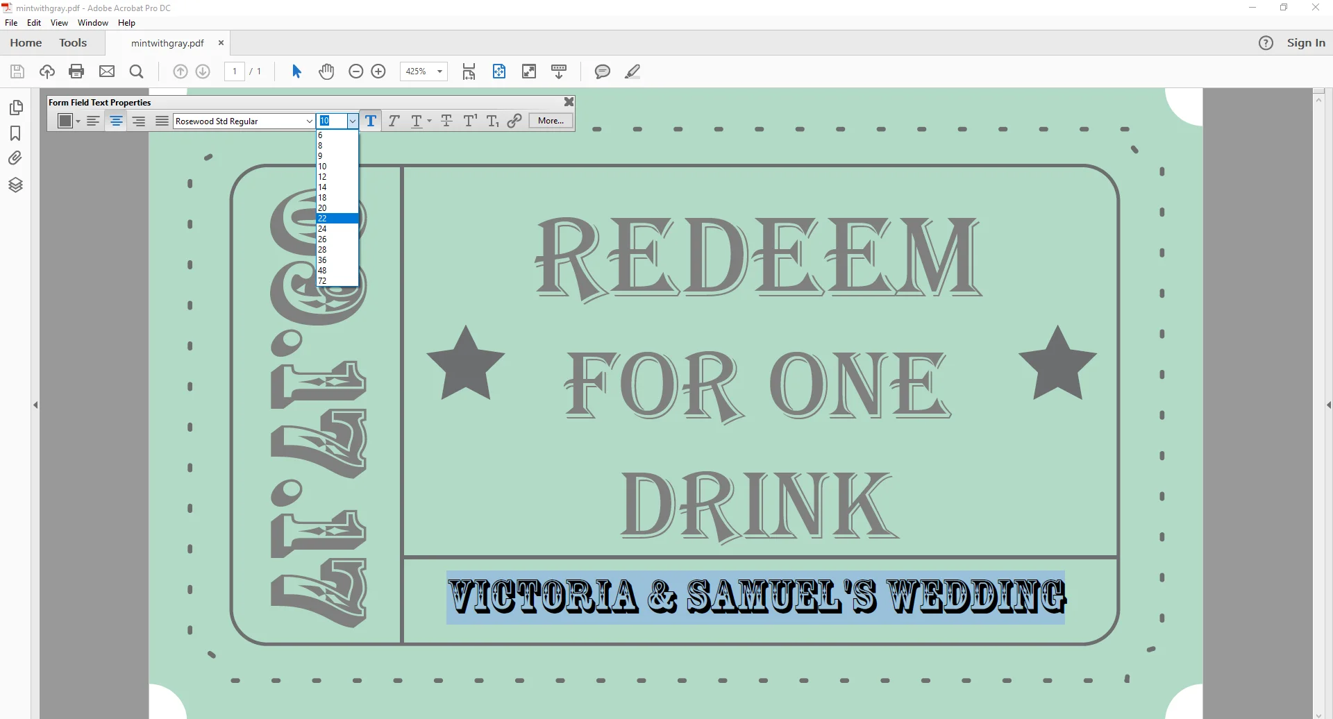 The font is already embedded in the template, so you don’t need to worry about downloading and importing any fonts. To edit the text, simply highlight or select my sample text that you want to change. To change font size select the text, then press [Cmd-E] for Mac users or [Ctrl-E] for PC users to open properties bar, from here you can edit the size of the included font or alternatively select any font loaded on your machine can also be selected from the dropdown menu to change the font. (You may add any number of characters you like to each text box. But if your text exceeds the predesigned length, you’ll need to adjust the size of the font to accommodate the size)